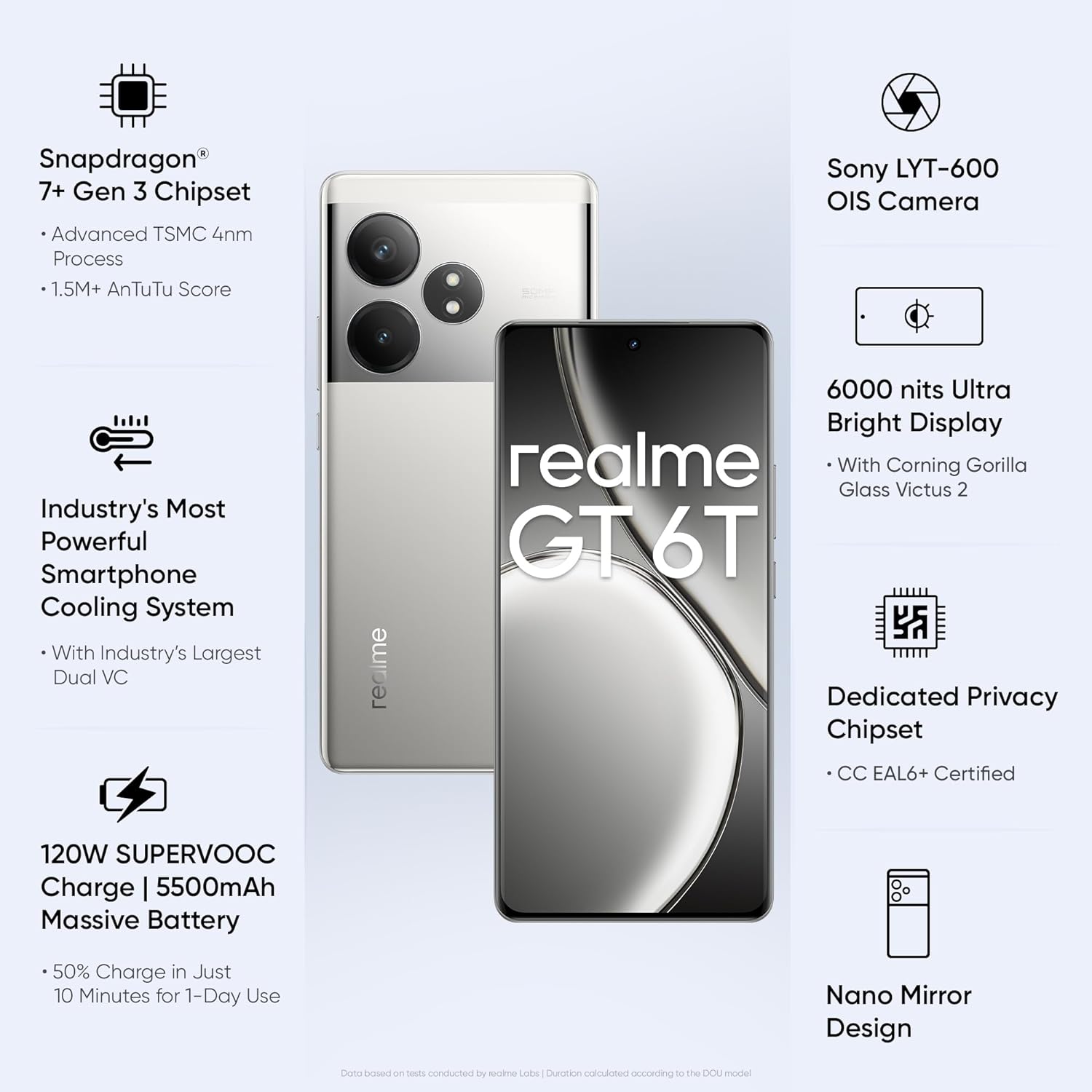 realme GT 6T 5G (Fluid Silver,8GB RAM+256GB Storage) | India’s 1st 7+ Gen 3 Flagship Chipset | 1.5M + AnTuTu Score | 5500mAh+120W | The World’s Brightest Flagship Display